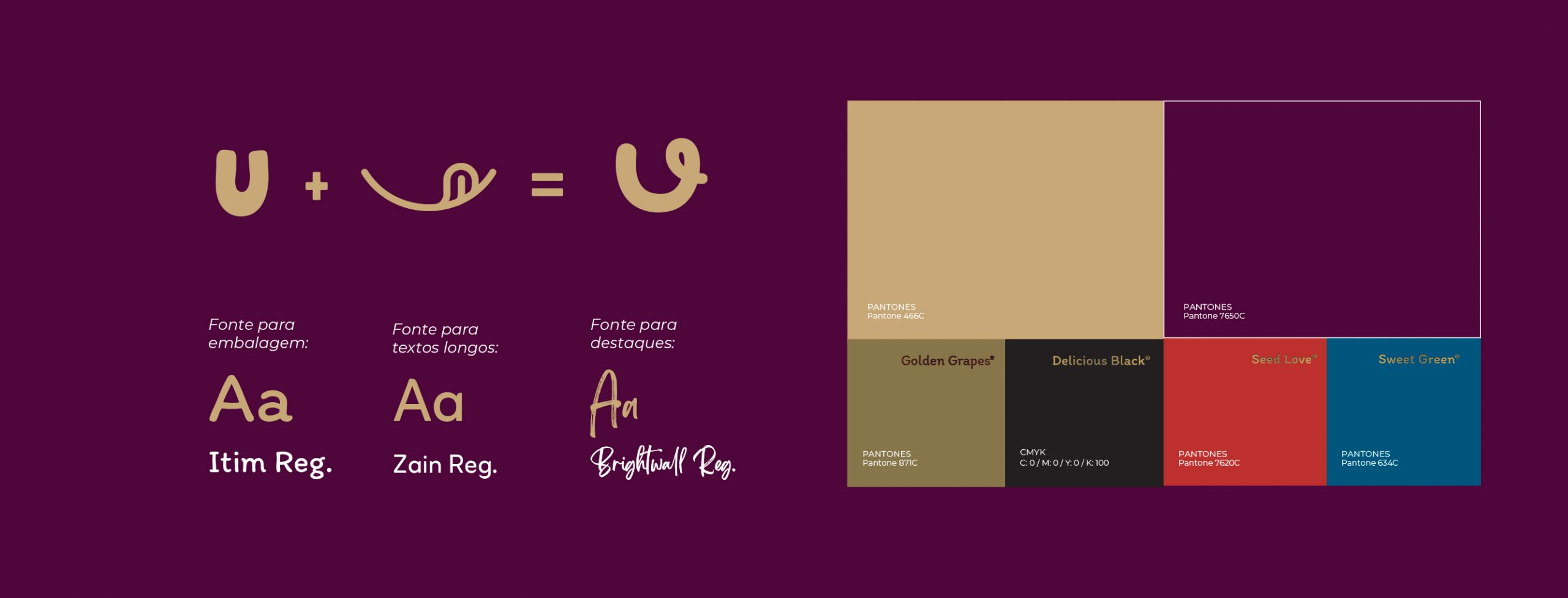 As tipografias refletem simpatia e sofisticação, criando uma identidade que acolhe o consumidor e, ao mesmo tempo, exalta a nobreza do produto. Foram desenvolvidos nomes registrados estrategicamente como diferenciação e exclusividade da marca no mercado.