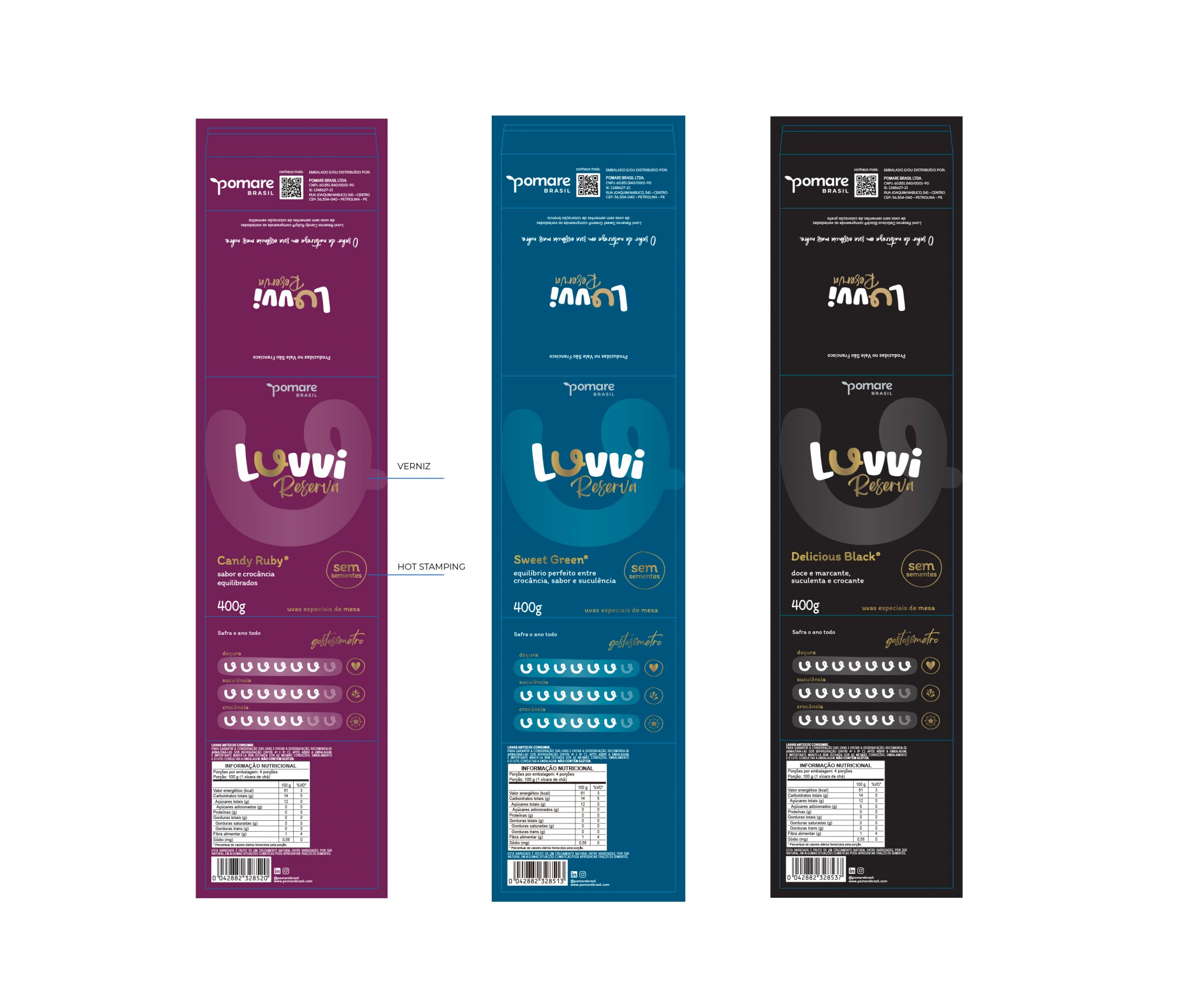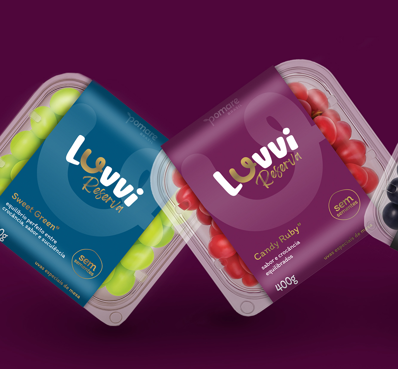 A Luvvi nasce sob o guarda-chuva da Pomare, trazendo ao mercado uma linha de frutas que traduzem excelência e exclusividade. O desafio foi criar uma marca com identidade visual capaz de transmitir a qualidade premium do produto, sem abrir a mão da leveza e da alegria .