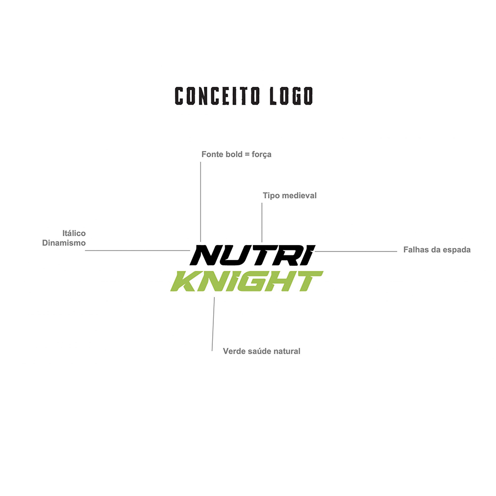 O naming combina nutrição (“Nutri”) e a simbologia de um cavaleiro medieval (“Knight”), evocando atributos de força, proteção e honra – resultando em uma marca sólida, impactante e confiável.