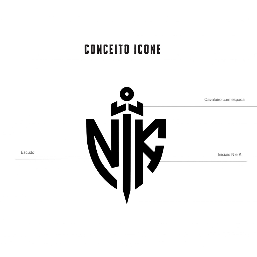 Ícone: inspirado em escudo e espada, incorpora as iniciais “N” e “K”, simbolizando defesa e poder.
